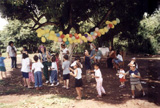 das pequenas comunidades, com brincadeiras, palhaço, comidas e
